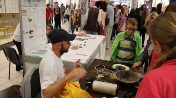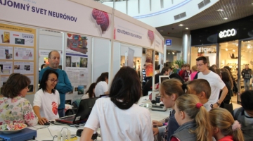 V priestoroch obchodného centra Atrium Optima ste videli viac ako 70 vedeckých stánkov a prezentácií košických univerzít - Technickej univerzity, Univerzity Pavla Jozefa Šafárika, Univerzity veterinárskeho lekárstva a farmácie v Košiciach, ale aj Prešovskej univerzity a výskumných ústavov SAV. Zdroj: Emil Gažo
